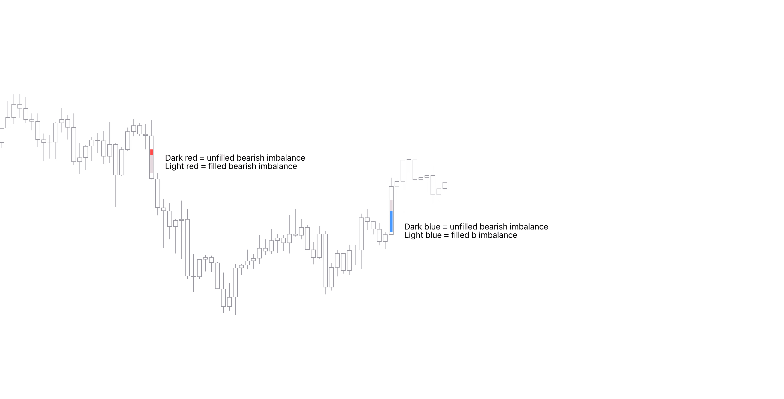 The indicator can be set to show only unfilled imbalances or both unfilled and filled. Users can also hide all imbalances if needed.