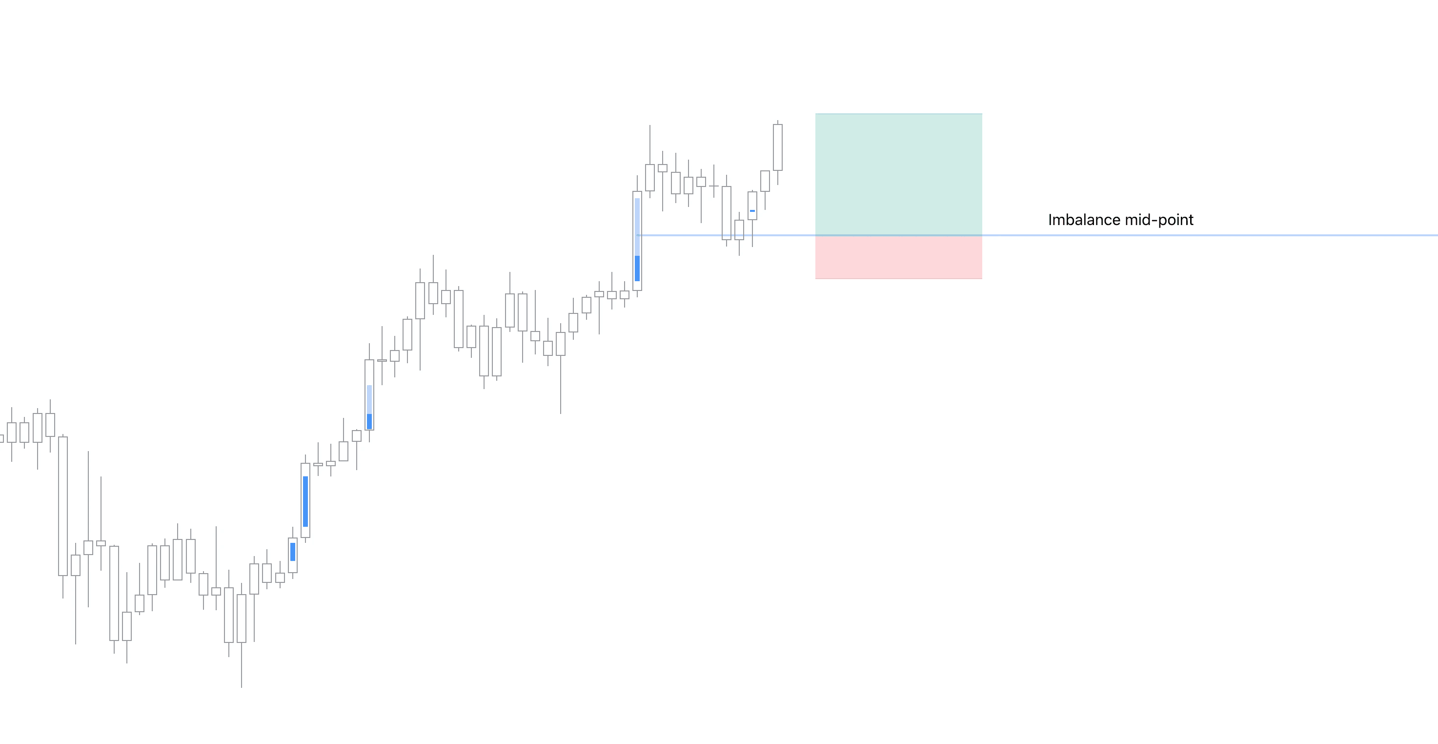 Traders sometimes prefer to use mid-point of imbalances as reference point, in case a full rebalancing does not occur.