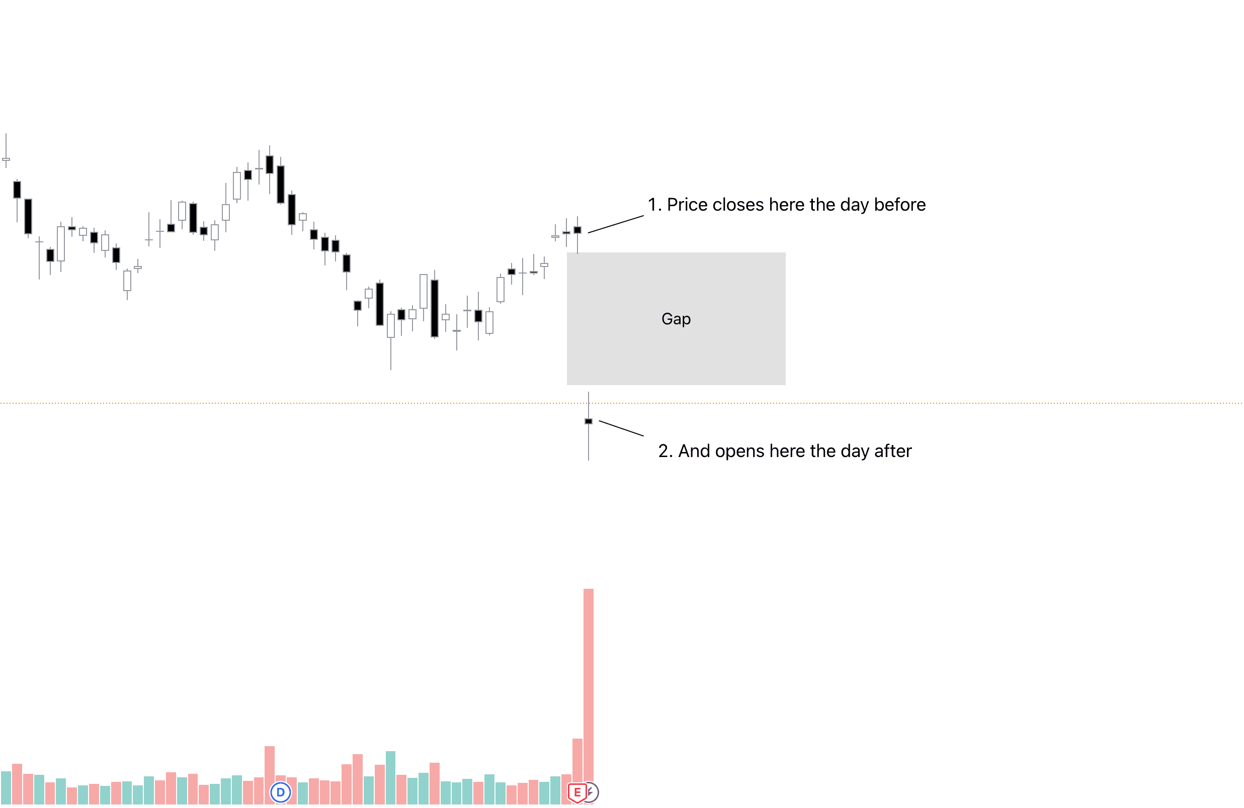 This happens when a stock opens significantly higher or lower than close of the previous trading day. Here's what that looks like.